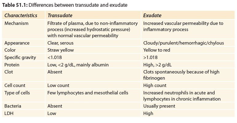 It is important to differentiate whether the fluid is a transudate or exudate (Table 51.1).
