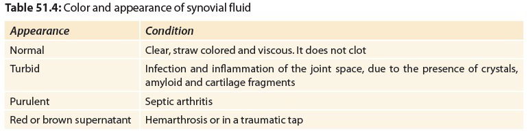 Examination of synovial fluid is useful in the diagnosis of joint disorders.