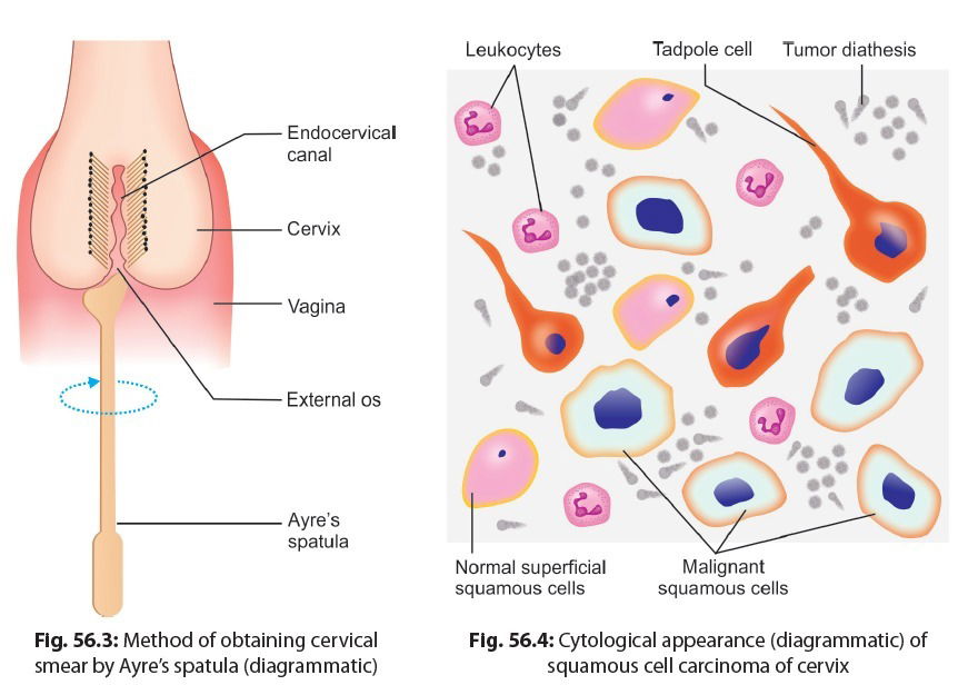 •• Cervical smears are obtained by using an Ayre’s spatula and are reported by using Bethesda (2001)system.